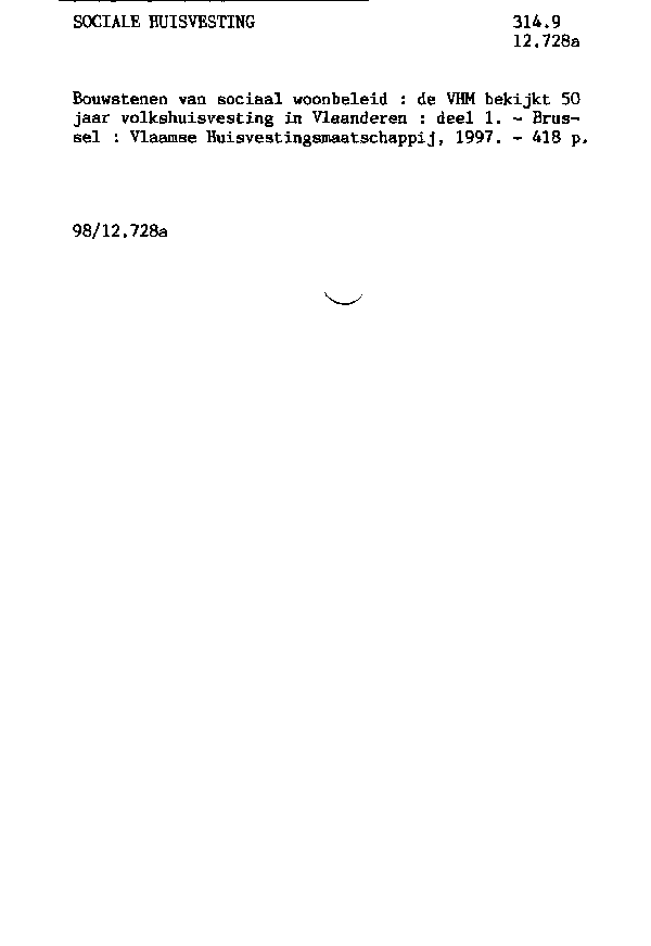 - Bouwstenen van sociaal woonbeleid : de VHM bekijkt 50 jaar volkshuisvesting in Vlaanderen: deel 1.