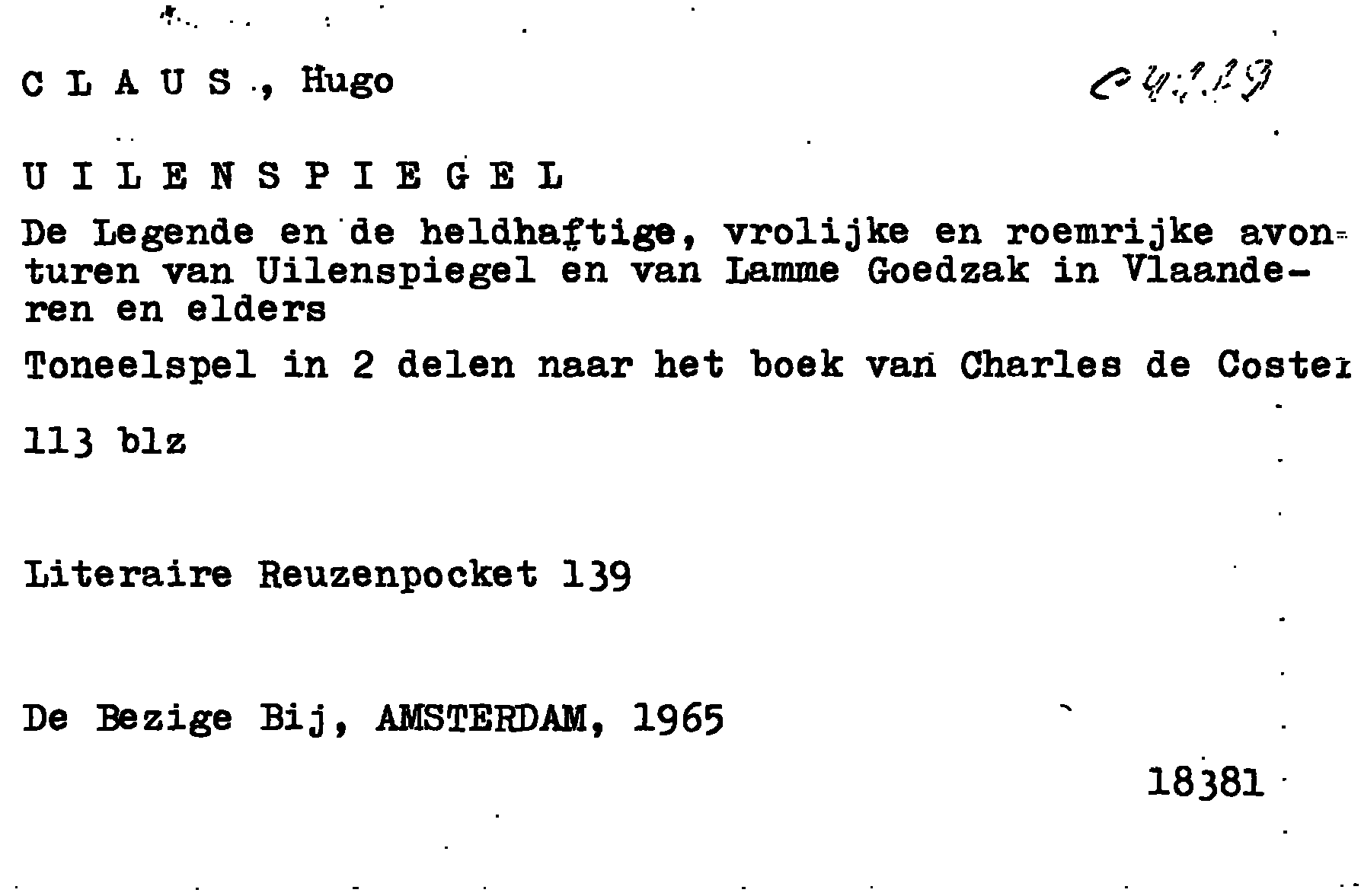 - De legende en de heldhaftige, vrolijke en roemrijke avonturen van Uilenspiegel en van Lamme Goedzak in Vlaanderen en elders : toneelspel in twee delen naar het boek van Charles de Coster