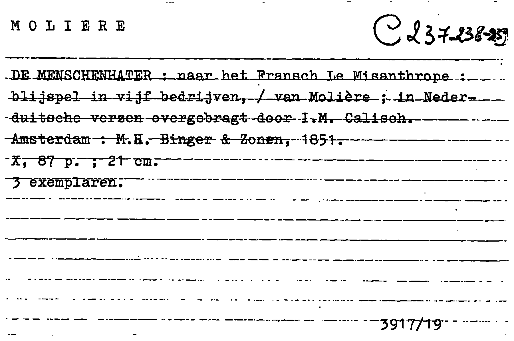 - DE MENSCHENHATER : naar het Fransch 'Le Misanthrope', blijspel in vijf bedrijven