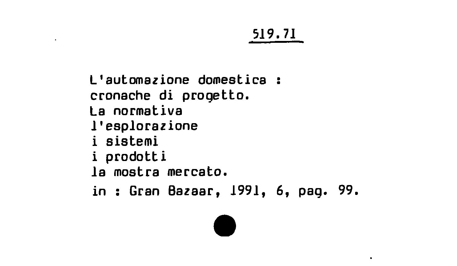 - L'automazione domestica : cronache di progetto ; La normativa l'esplorazione i sistemi i prodotti la mostra mercato