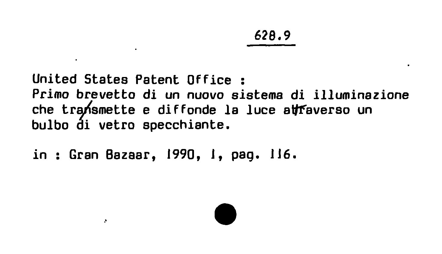 - United States Patent Office : Primo brevetto di un nuovo sistema di illuminazione che mette e diffonde la luce attaverso un bulbo di vetro specchiante