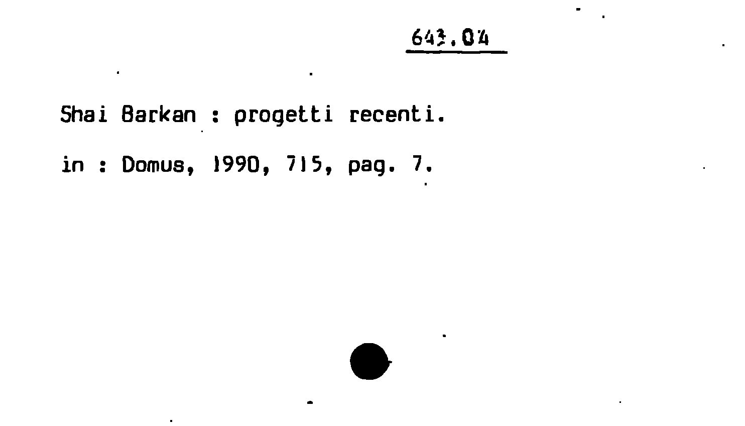 - Shai Barkan : progetti recenti