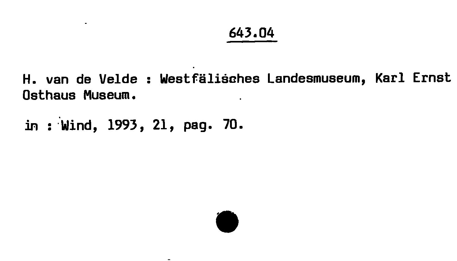 - H. van de Velde : Westfälisches Landesmuseum, Karl Ernst Osthaus Museum