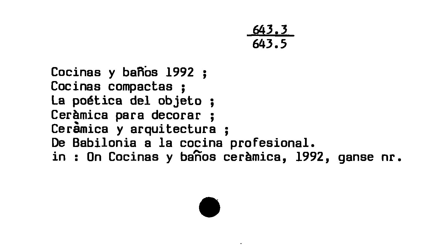 - Cocinas y baños 1992 : Cocinas compactas ; La poética del objeto ; ; Ceràmica para decorar ; Ceràmica y arquitectura ; De Babilonia a la cocina profesional