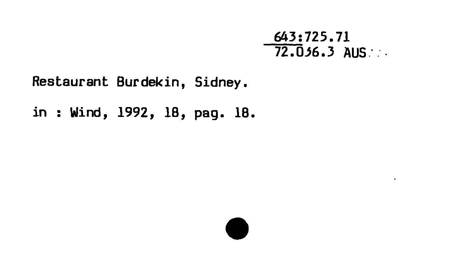 - Restaurant Burdekin, Sidney