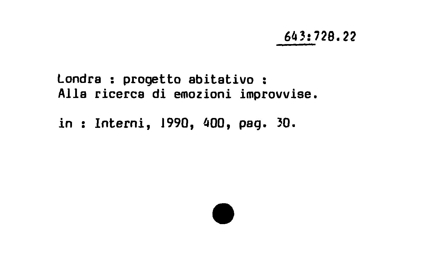 - Londra : progetto abitativo ; Alla ricerca di emozioni improvvise