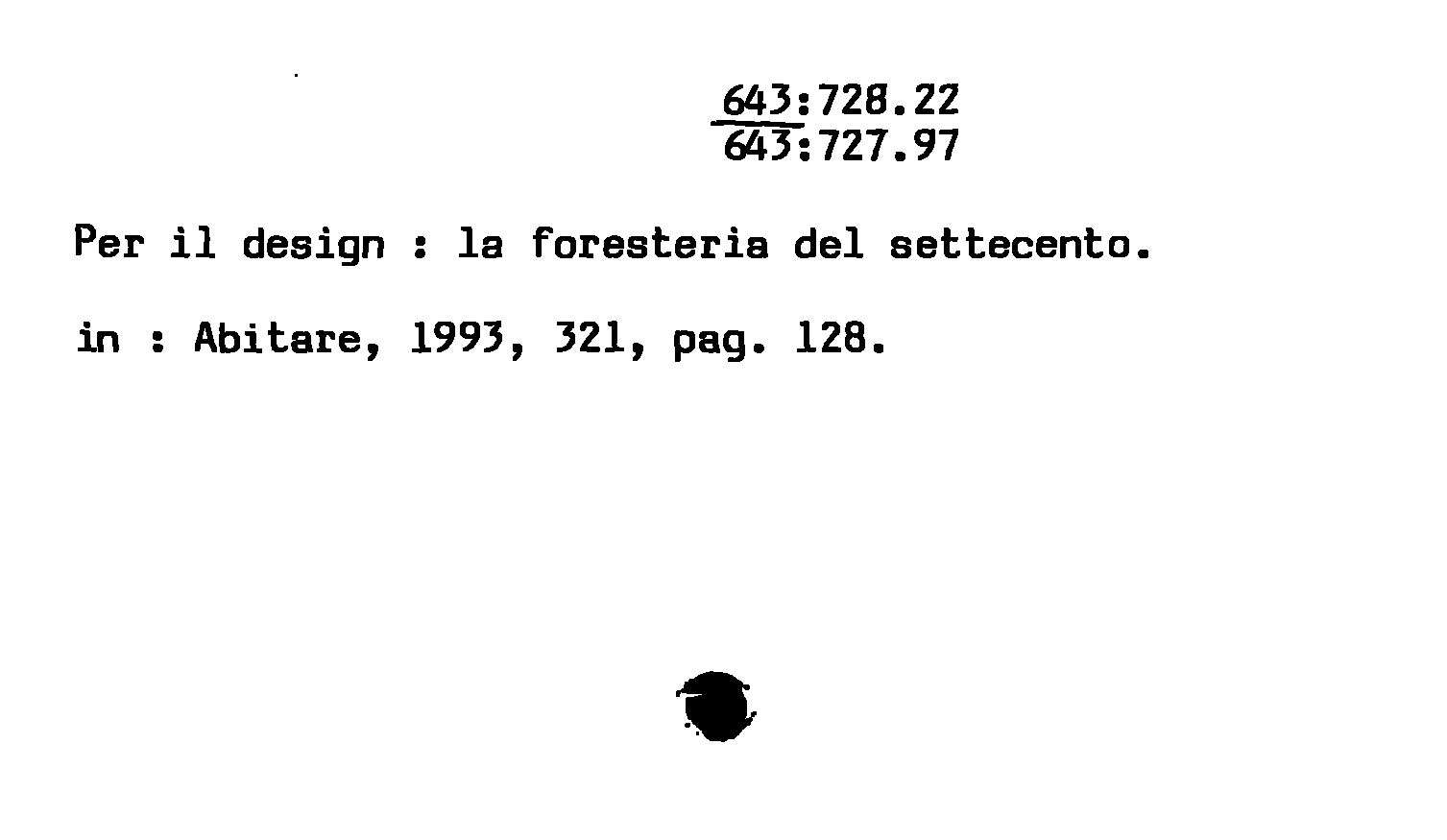- Per il design : la foresteria del settecento