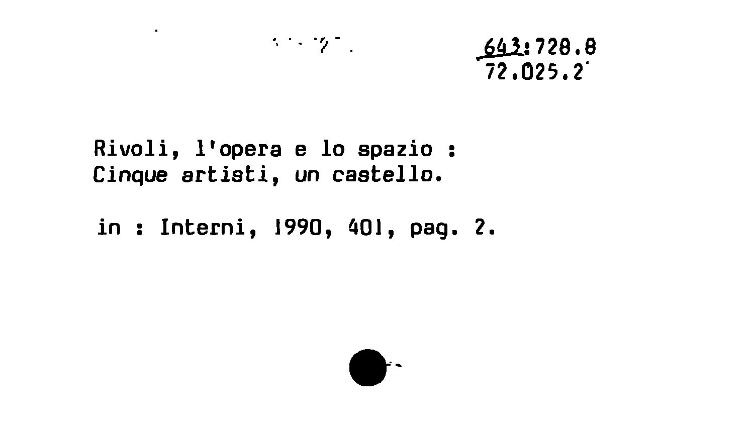 - Rivoli, l'opera e lo spazio : Cinque artisti, un castello