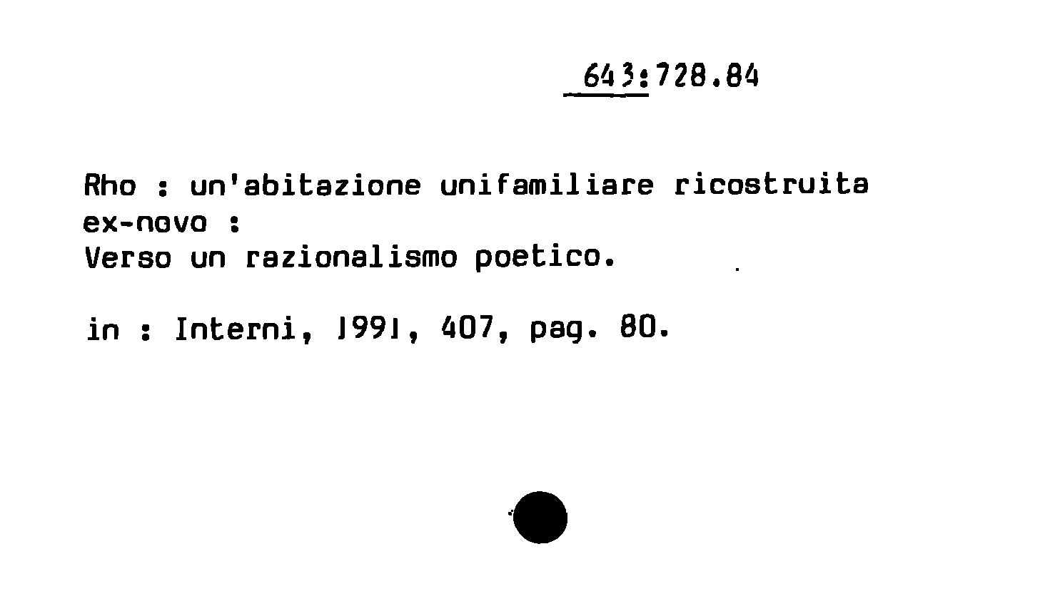 Rho : un'abitazione unifamiliare ricostruita ex-novo ; Verso un razionalismo poetico
