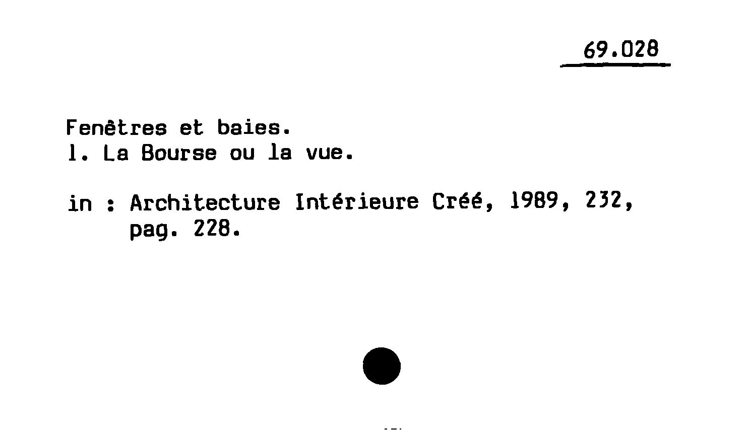 FenĂȘtres et baies : l. La Beurse ou la vue