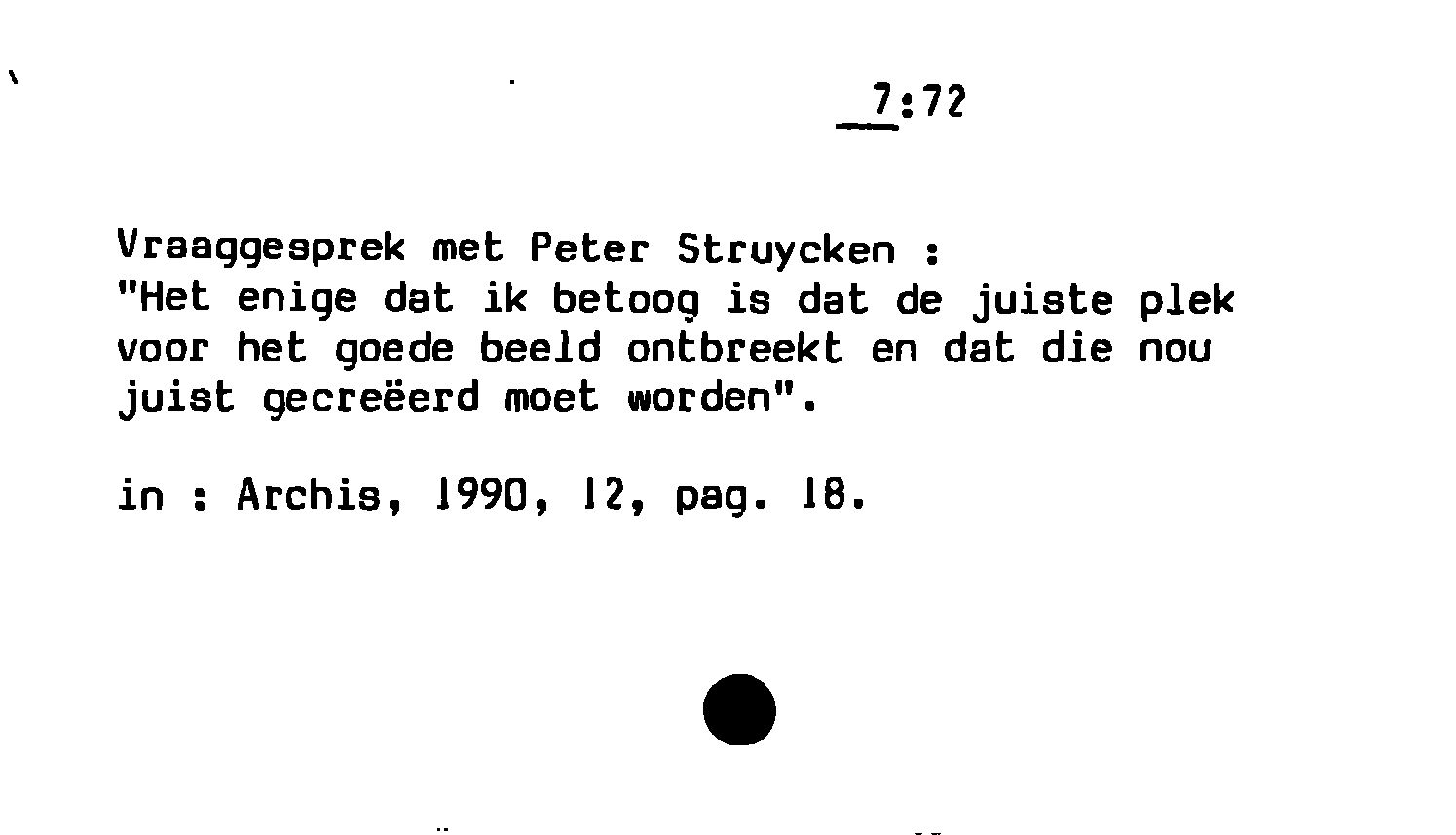 - Vraaggesprek met Peter Struycken : Het enige dat ik betoog is dat de juiste plek voor het goede beeld ontbreekt en dat die nou juist gecreëerd moet worden