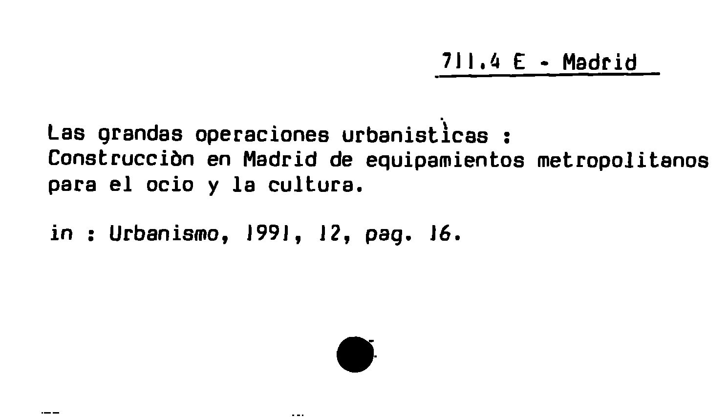 - Las grandas operaciones urbanisticas : Construcciòn en Madrid de equipamientos metropolitanos para el ocio y la cu-ltura