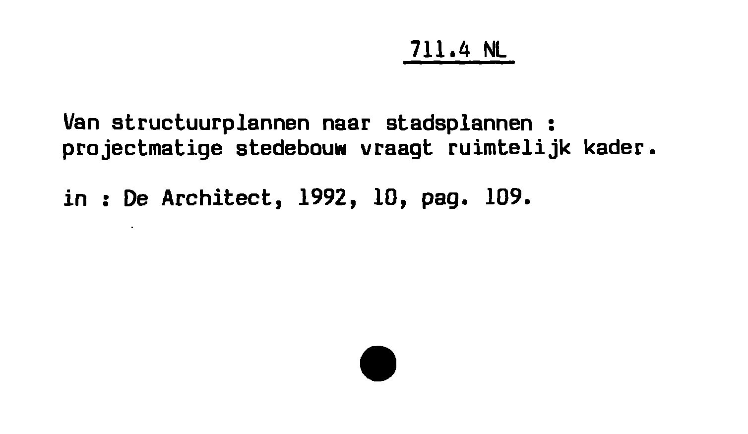 - Van structuurplannen naar stadsplannen : projectmatige stedebouw vraagt ruimtelijk kader