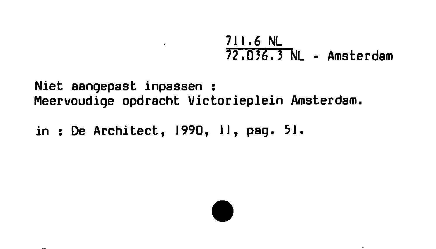 - Niet aangepast inpassen : Meervoudige opdracht Victorieplein Amsterdam