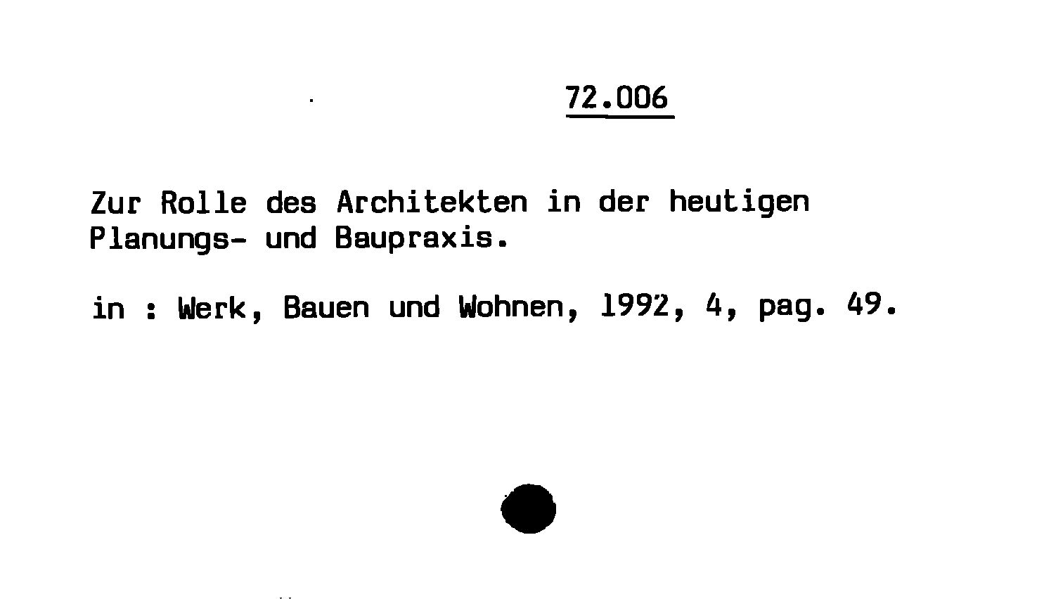 - Zur Rolle des Architekten in der heutigen Planungs- und Baupraxis
