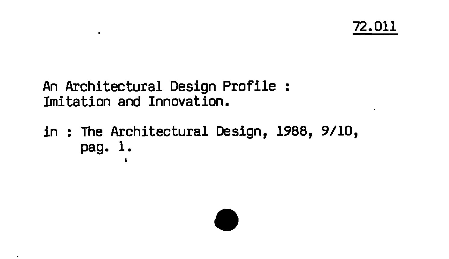 - An Architectural Design Profile : Imitation and Innovation