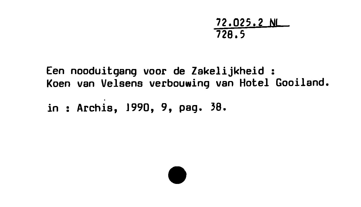 - Een nooduitgang voor de Zakelijkheid : Koen van Velsens verbouwing van Hotel Gooiland