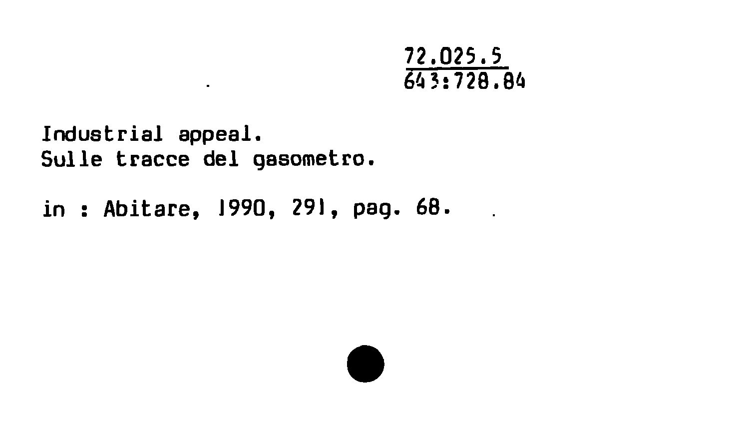 - Industrial appeal : SulIe tracce del gasometro