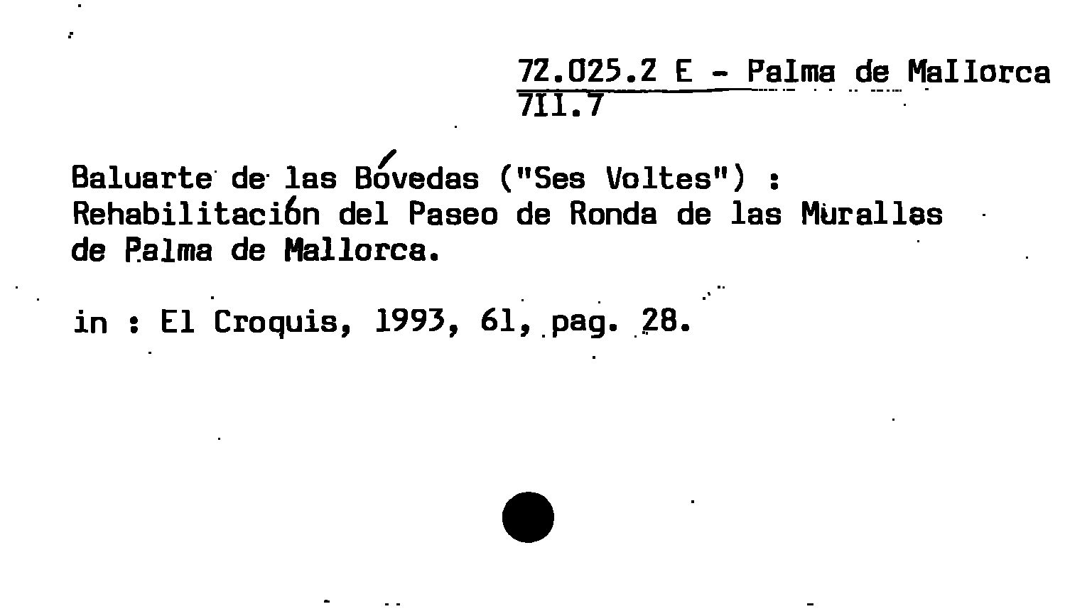 - Baluarte de las Bóvedas ("Ses Voltes") : Rehabilitación del Paseo de Ronda de las Mürallas de Palma de Mallorca