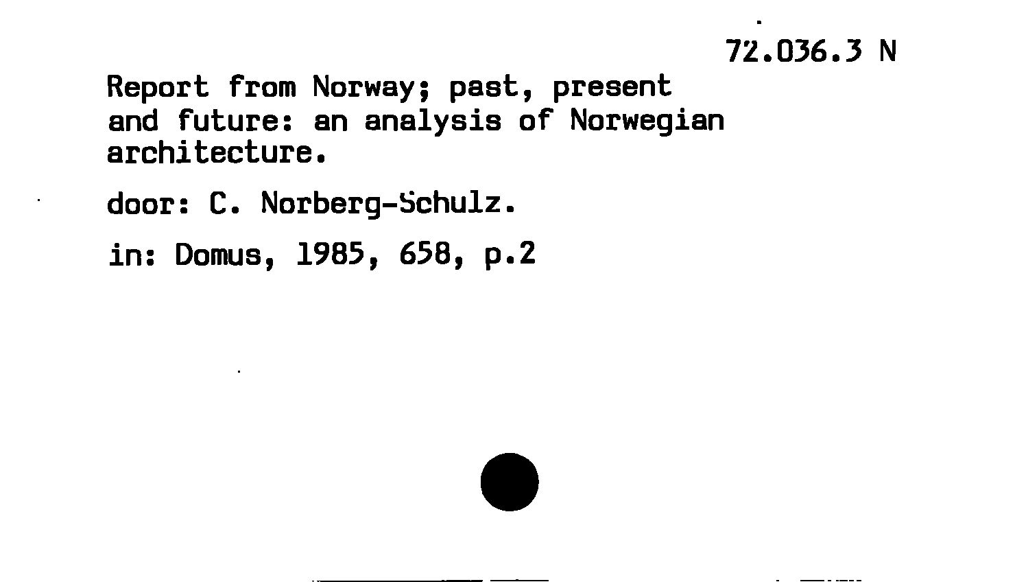 - Report from Norway : past, present and future ; an analysis of Norwegian architecture
