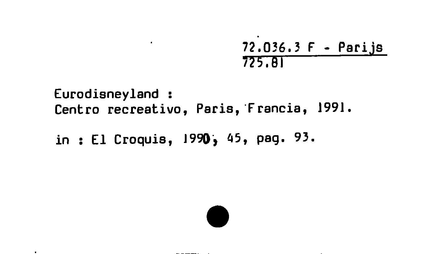 - Eurodisneyland : Centro recreativo, Paris, Francia, 1991