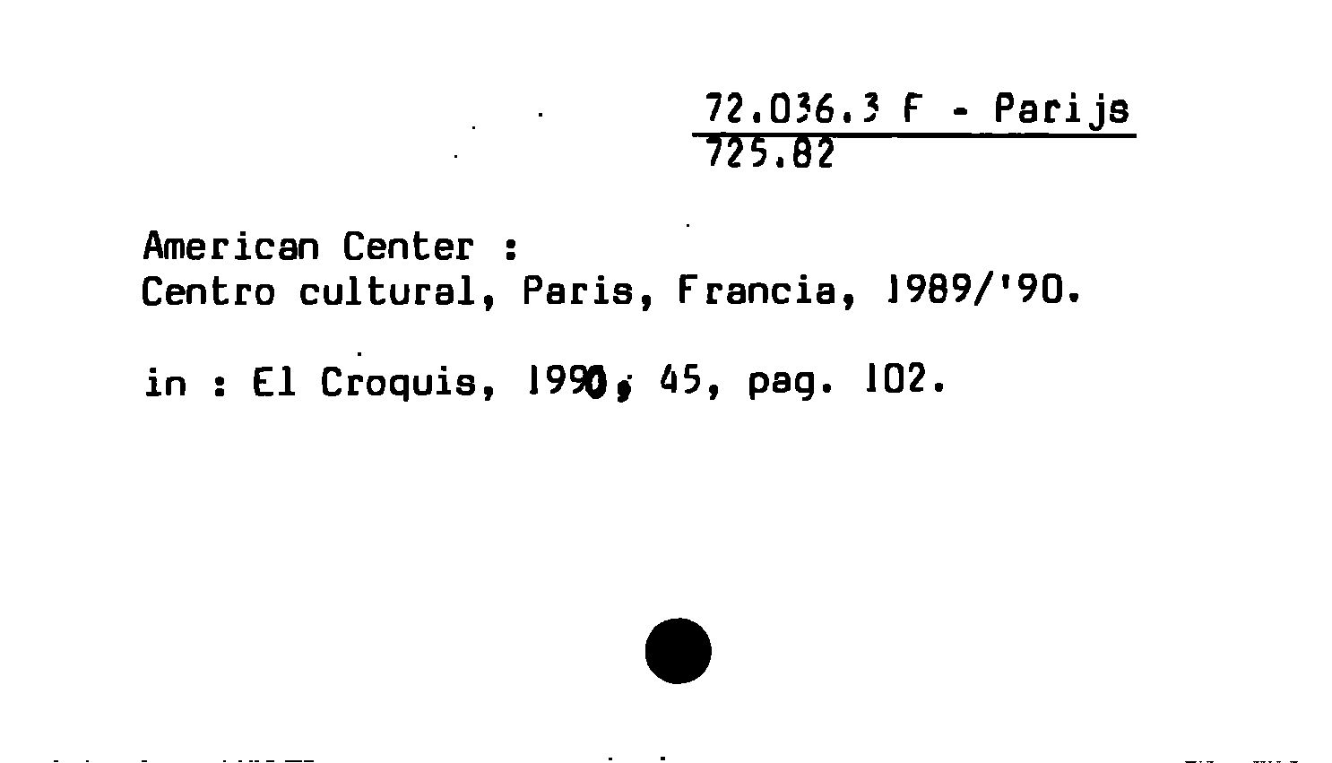 - American Center : Centro cultural, Paris, Francia, 1989/'90