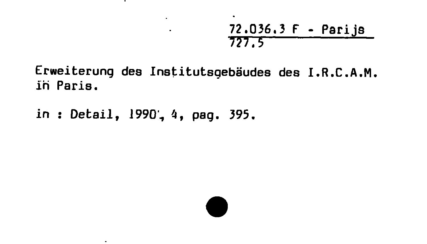 - Erweiterung des Institutsgebäudes des I.R.C.A.M. in Paris