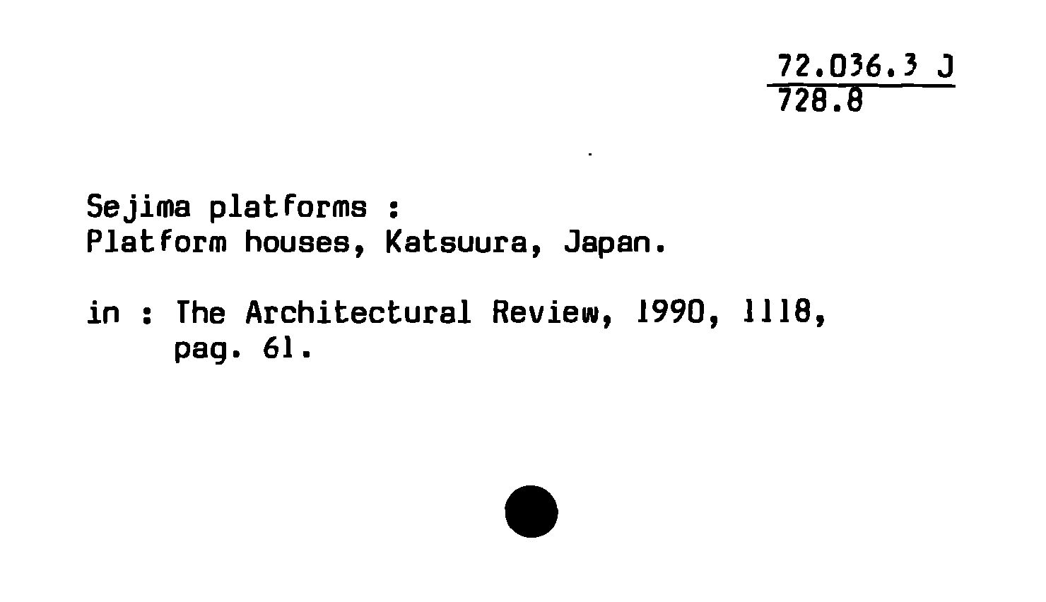 - Sejima platforms : Platform houses, Katsuura, Japan