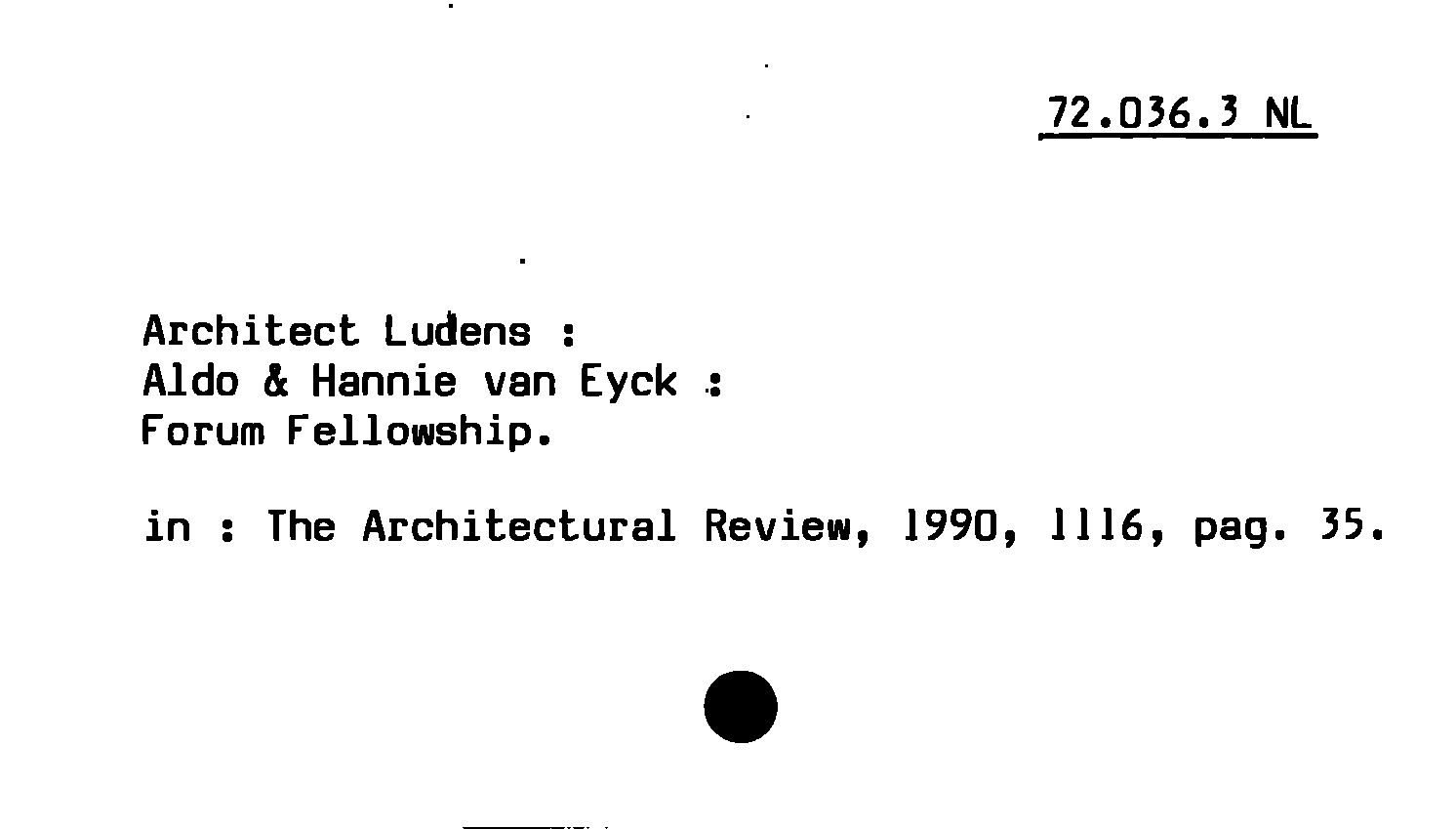 - Architect Ludens : Aldo & Hannie van Eyck ; Forum Fellowship