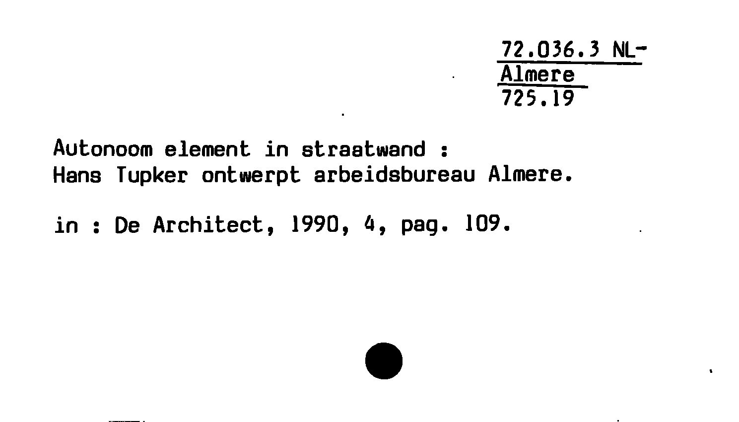 - Autonoom element in straatwand : Hans Tupker ontwerpt arbeidsbureau Almere