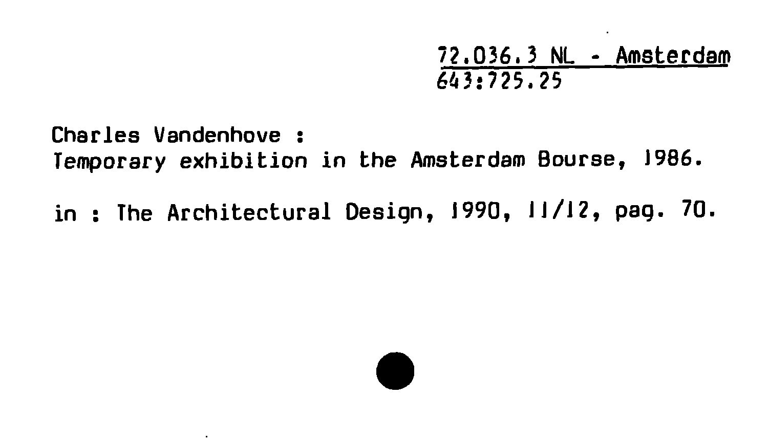 - Charles Vandenhove : Temporary exhibition in the Amsterdam Bourse, 1986