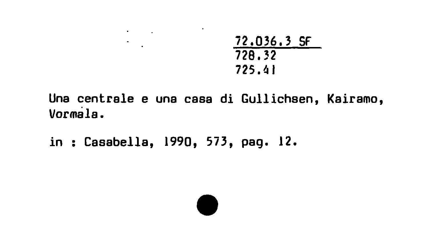 - Una centrale e una casa di Gullichsen, Kairamo, Vormala