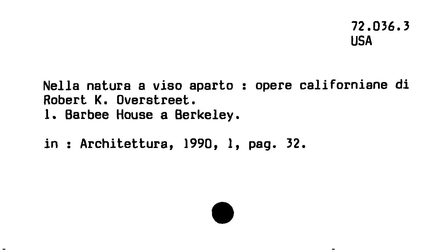 - Nella natura a viso aparto : opere californiane di Robert K. Overstreet ; l. Barbee House a Berkeley
