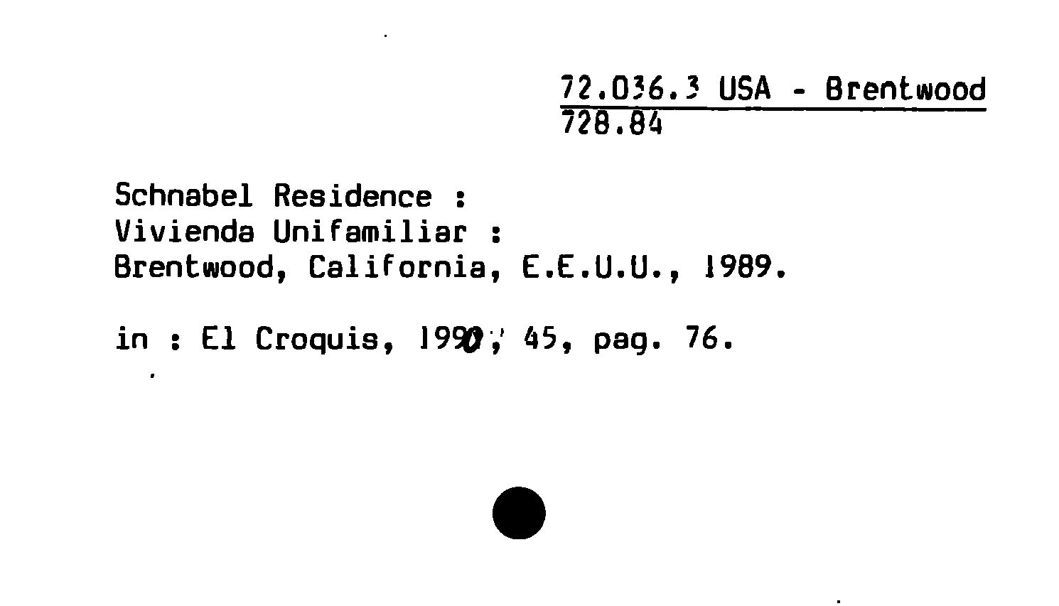 - Schnabel Residence : Vivienda Unifamiliar ; Brentwood, California, E.E.U.U., 1989