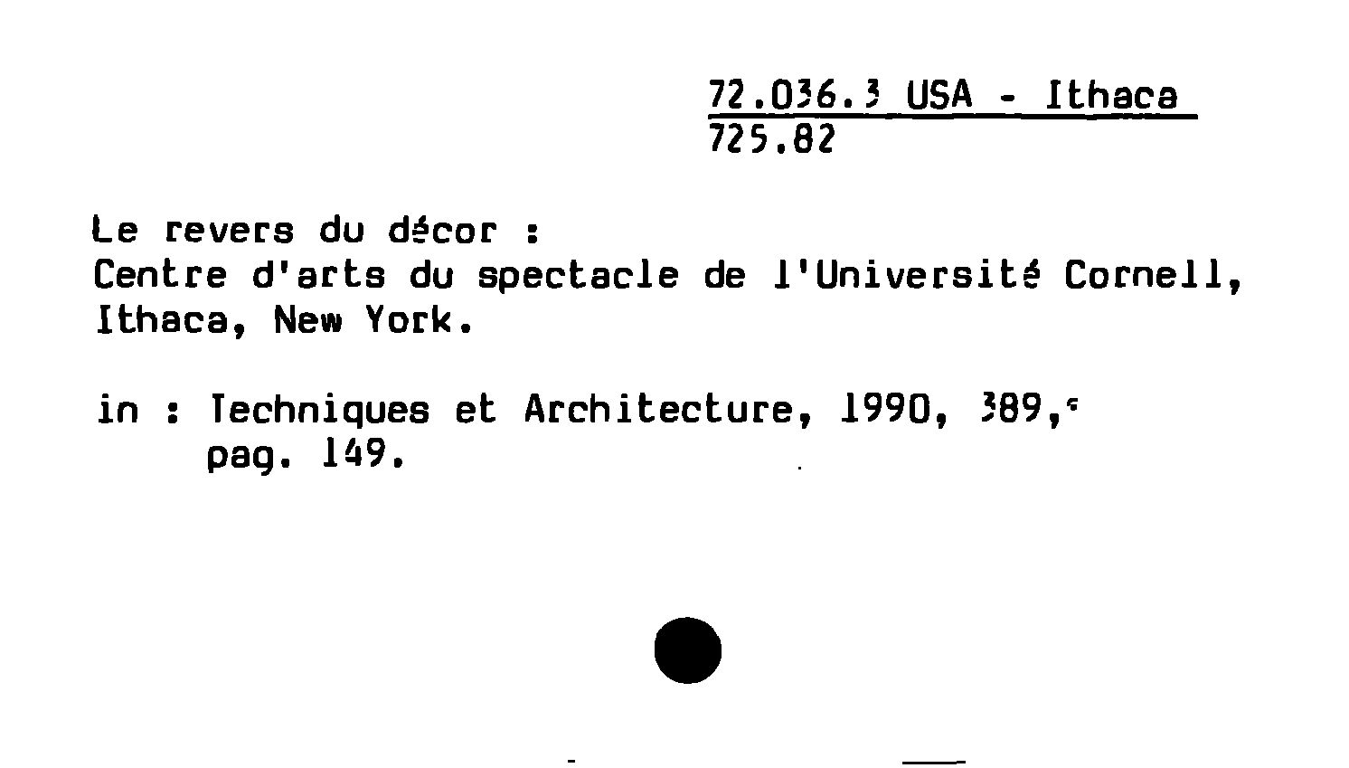 - Le revers du decor : Centre d'arts du spectacle de l'Université Cornell, Ithaca, New York