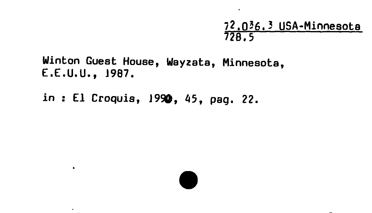 - Winton Guest House, Wayzata, Minnesofca, E.E.U.U., 1987