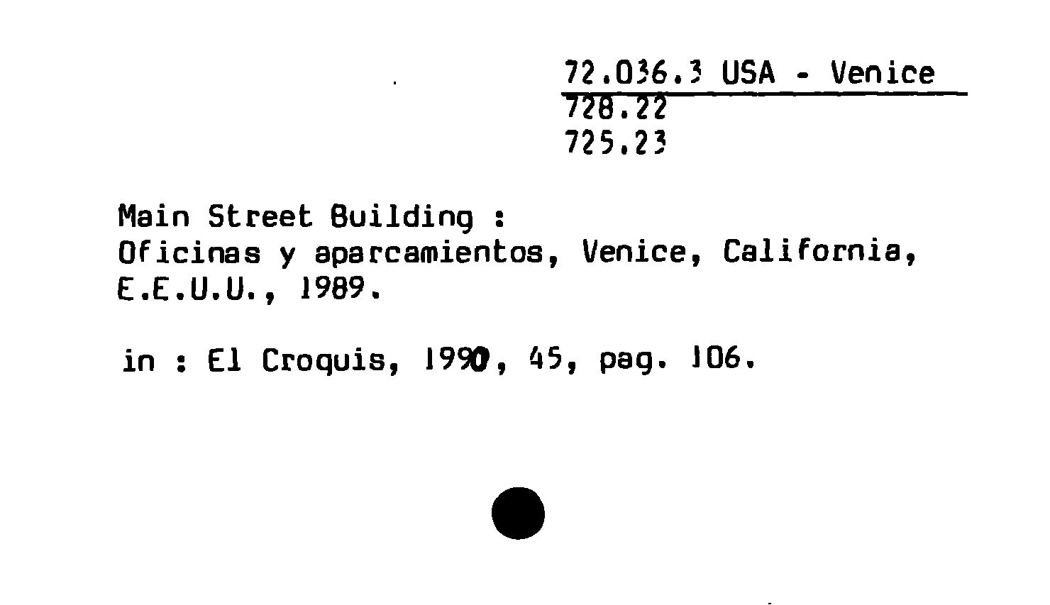 - Main Street Building : Oficinas y aparcamientos, Venice, California, E.E.U.U., 1989
