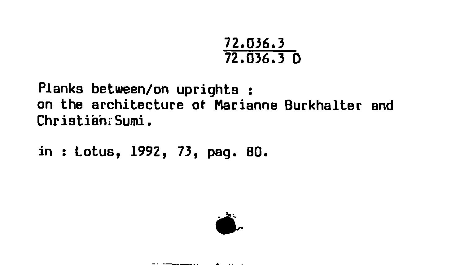 Planks between/on uprights : on the architecture of Marianne Burkhalter and Christian Sumi