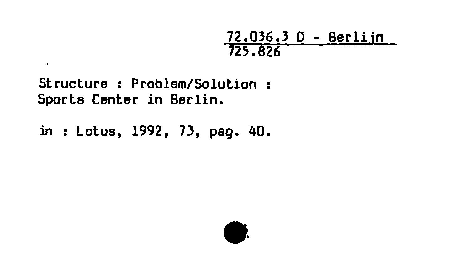 - Structure : Problem/Solution ; Sports Center in Berlin