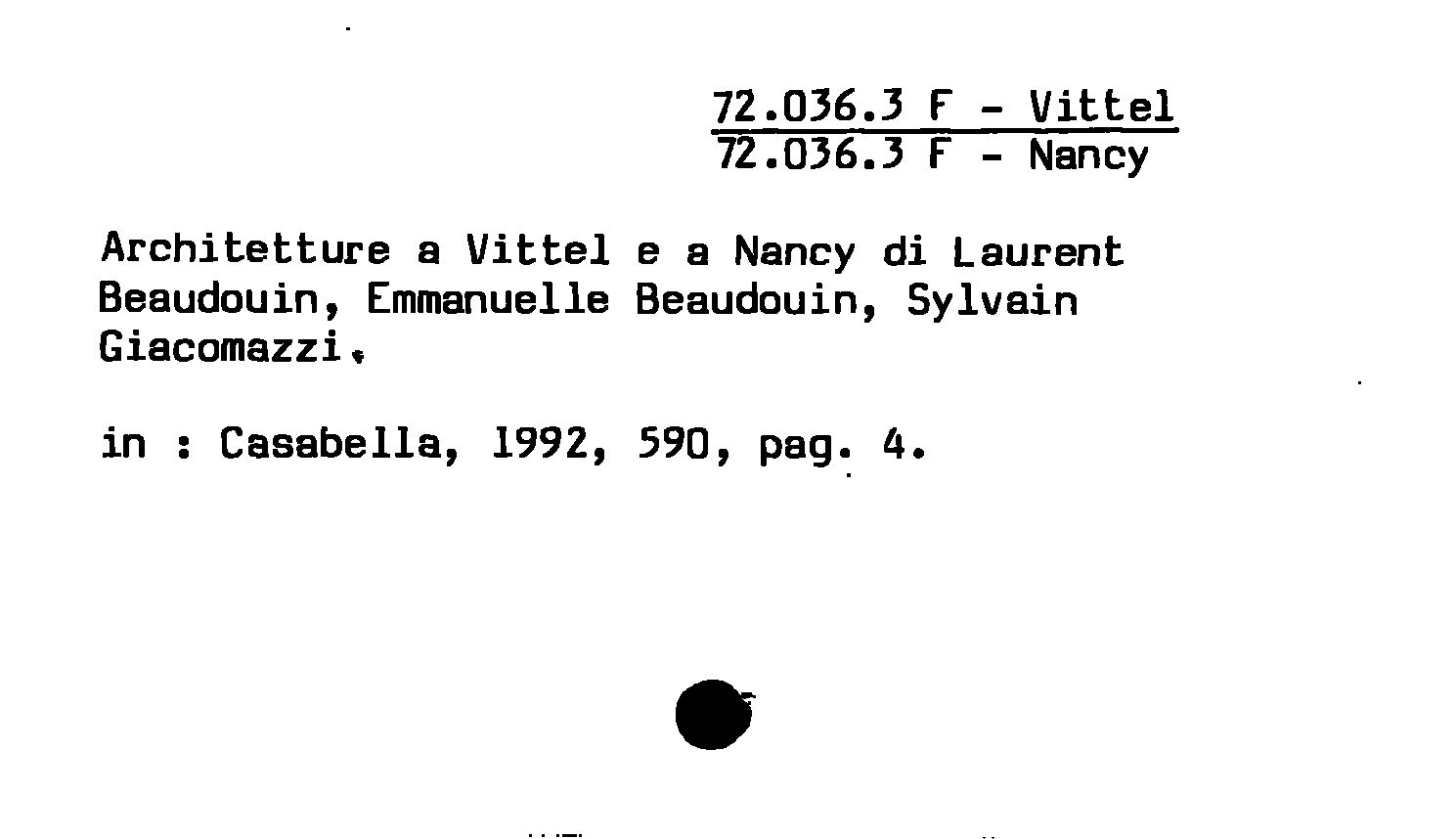 - Architetture a Vittel e a Nancy di Laurent Beaudouin, Emmanuelle Beaudouin, Sylvain Giacomazzi