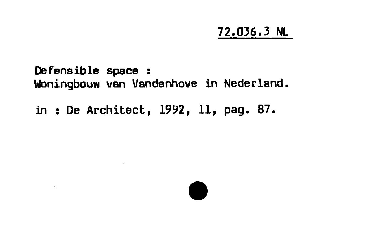 - Defensible space : Woningbouw van Vandenhove in Nederland