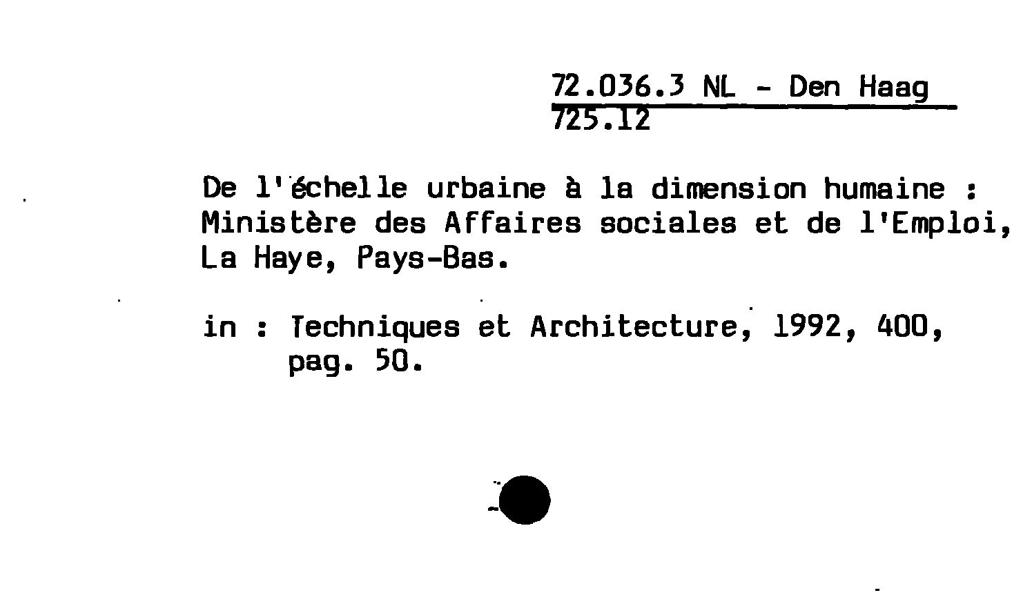 - De l'échelle urbaine à la dimension humaine : Ministère des Affaires sociales et de l'Emploi, La Haye, Pays-Bas
