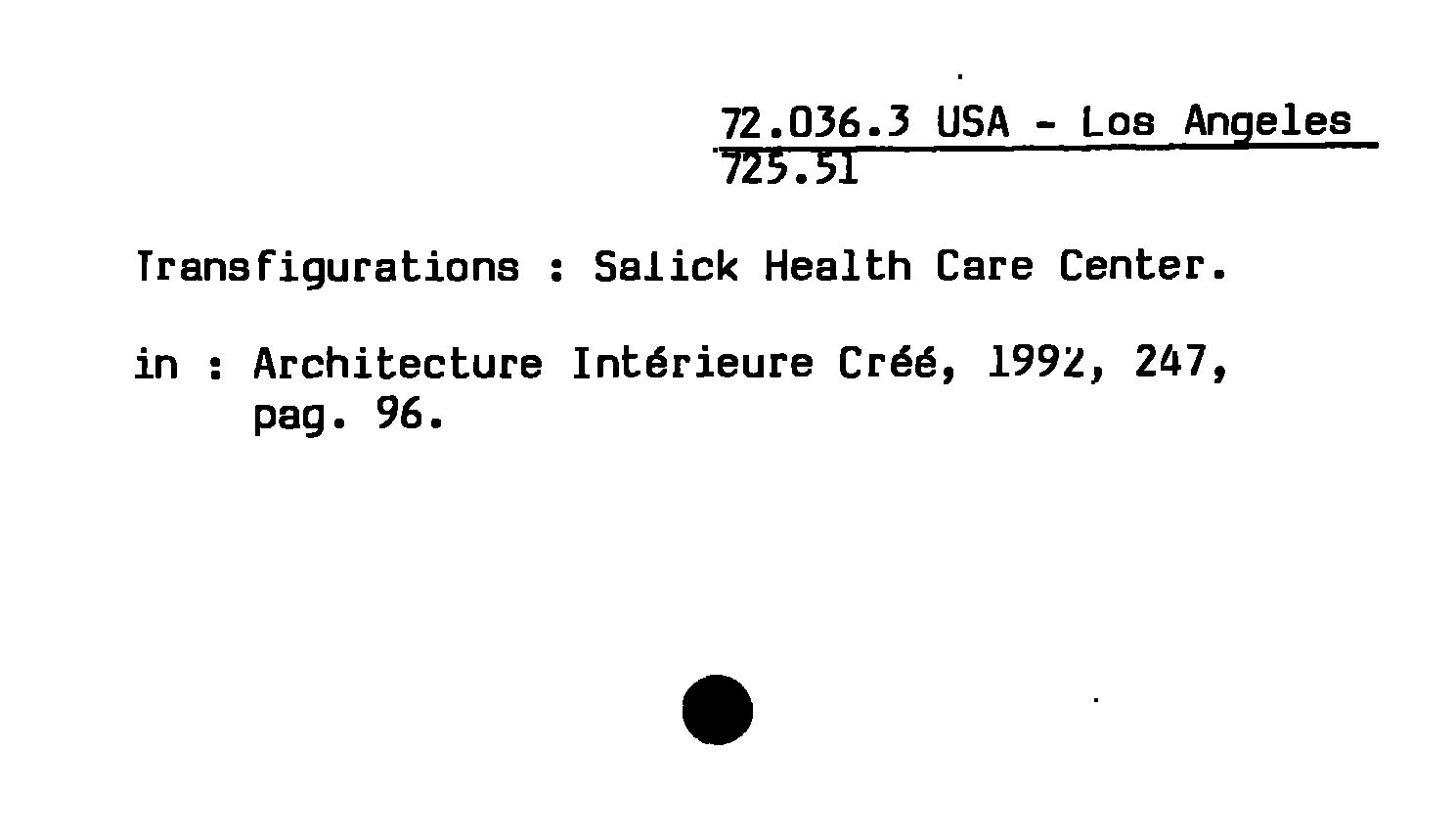 - Transfigurations : Salick Health Care Center