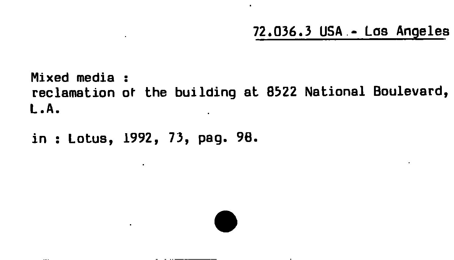 - Mixed media : reclamation of the building at 8522 National Boulevard, L.A