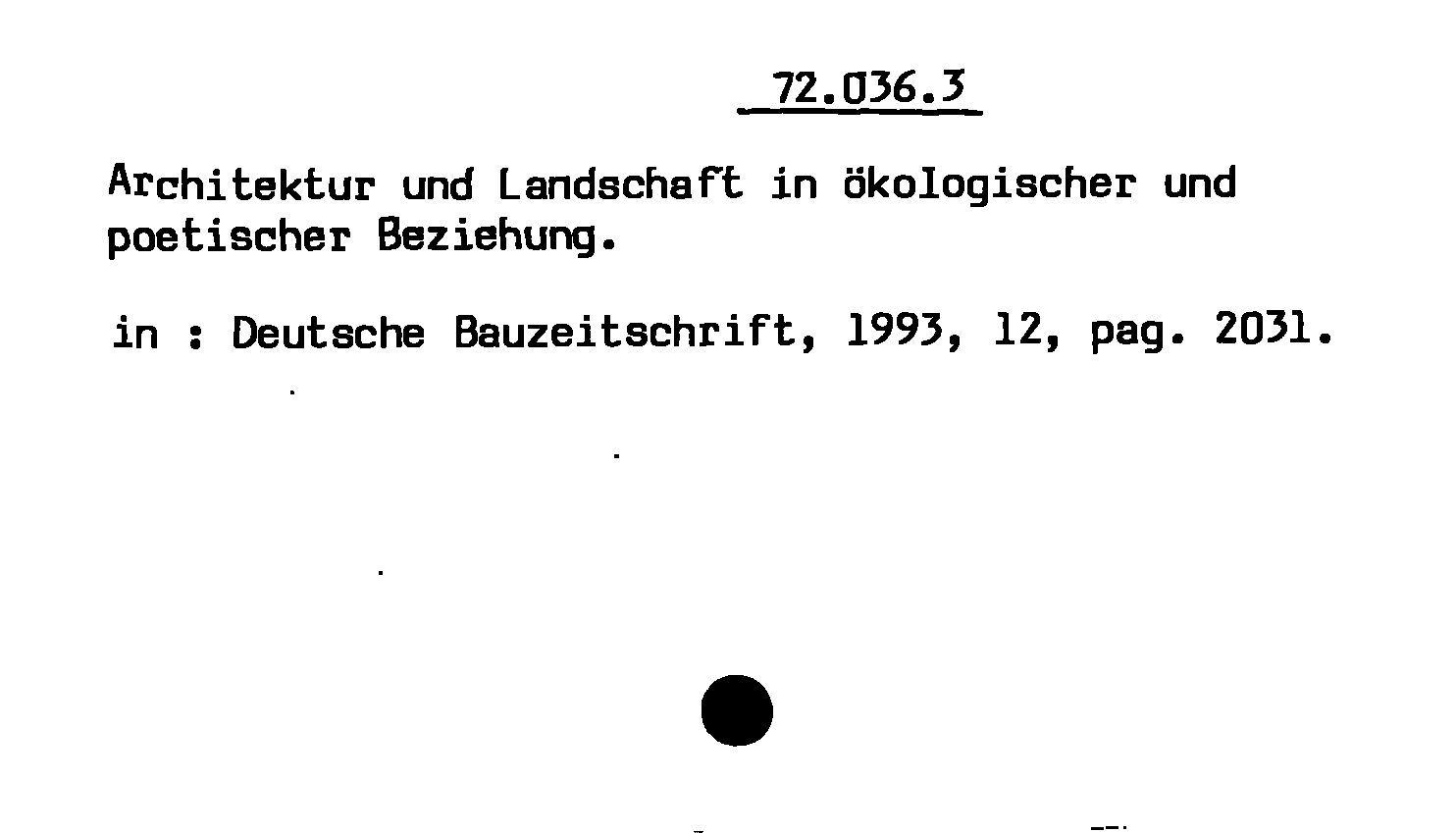 - Architektur und Landschaft in ökologischer und poetischer Beziehung