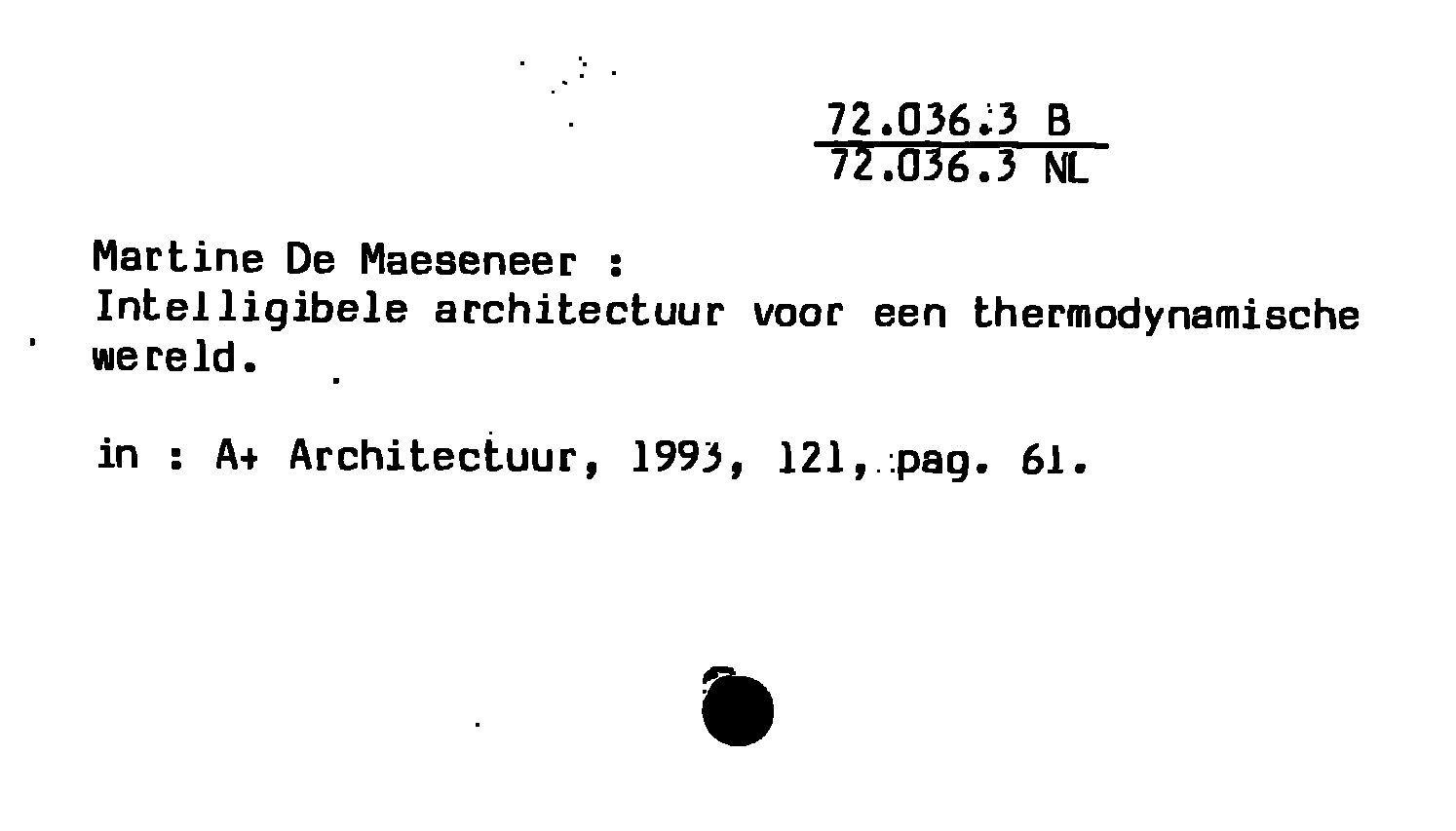 - Martine De Maeseneer : Intelligibele architectuur voor een thermodynamische wereld