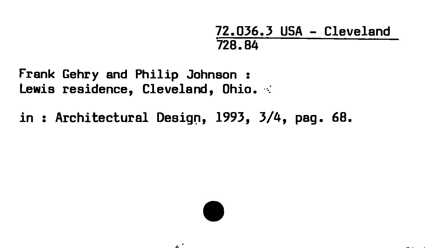 - Frank Gehry and Philip Johnson : Lewis residence, Cleveland, Ohio