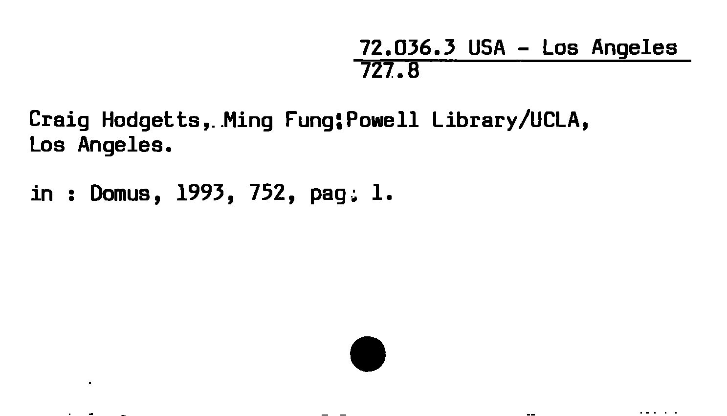 - Craig Hodgetts, Ming Fung: Powell Library/UCLA, Los Angeles