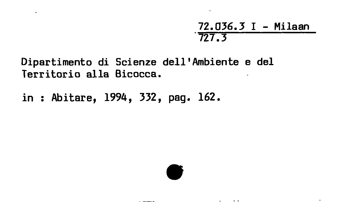 - Dipartimento di Scienze dell'Ambiente e del Territorio alla Bicocca