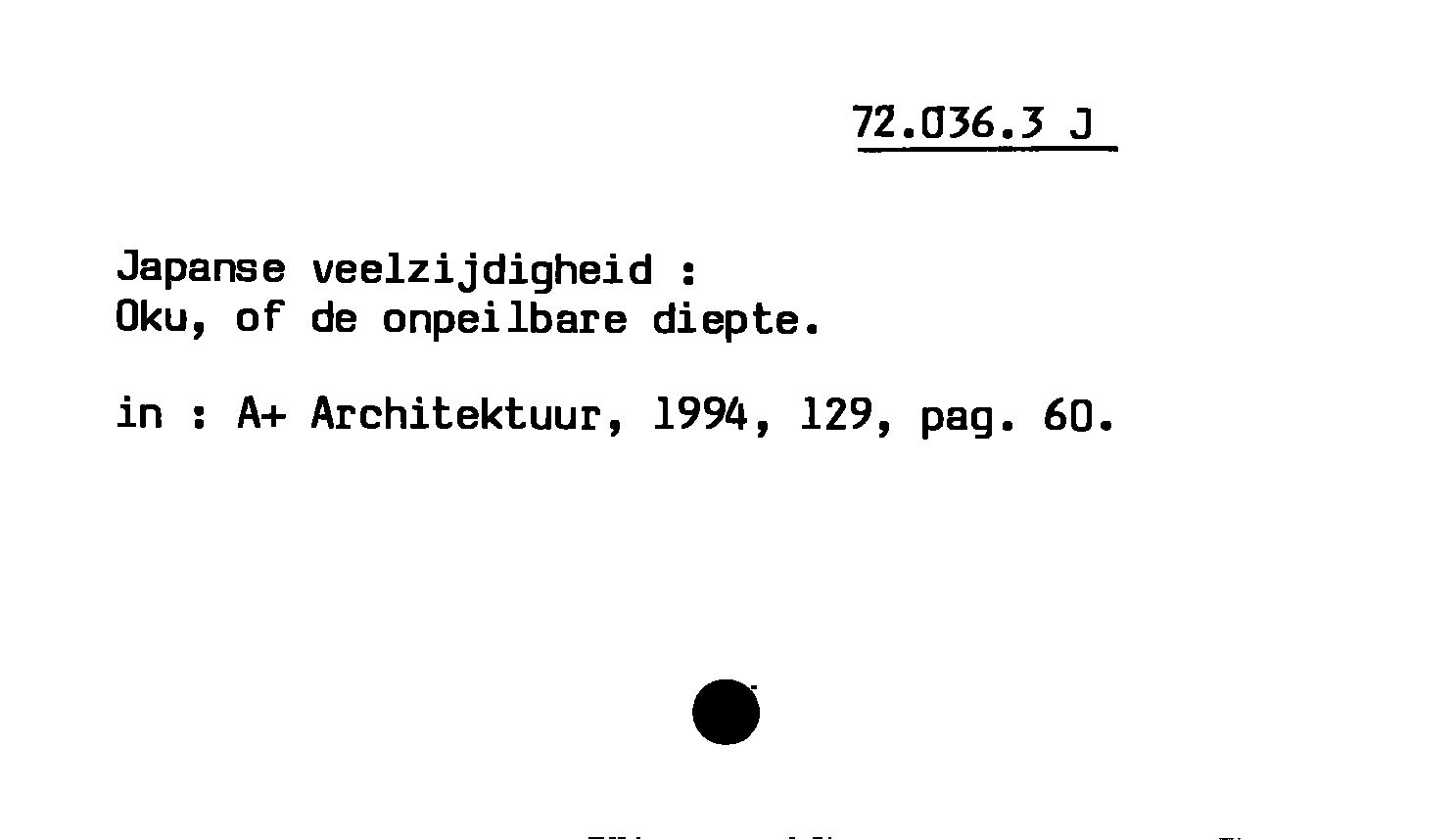 - Japanse veelzijdigheid : Oku, of de onpeilbare diepte